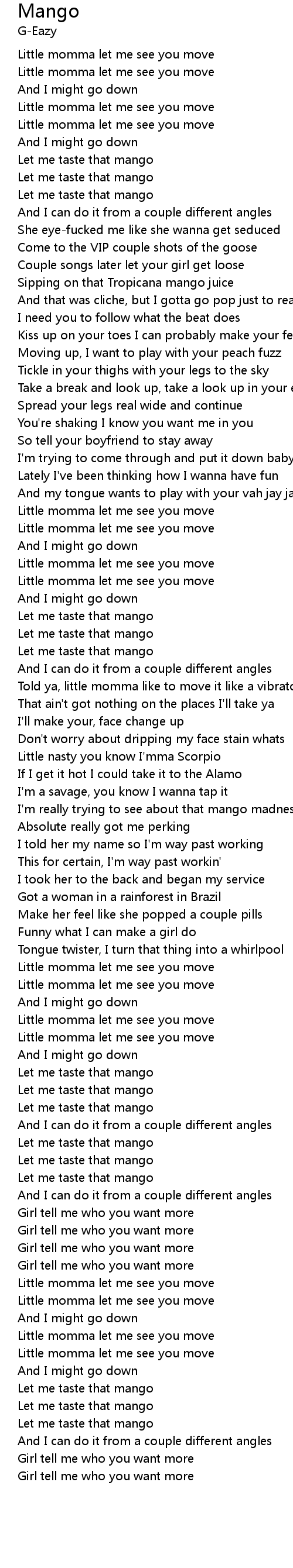 | [00:24.95] | Let me taste that mango |