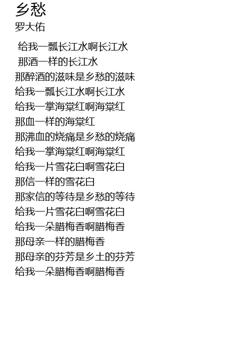 | [01:06.47] | 给我一瓢长江水啊长江水 |