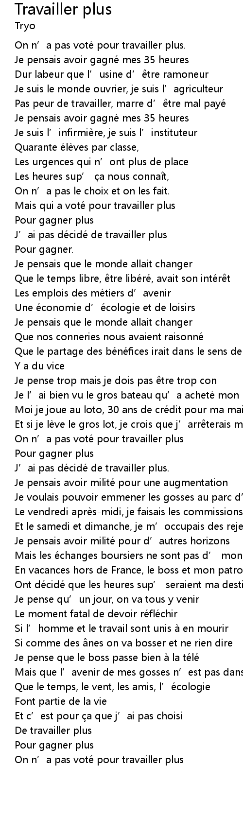 | J' ai pas dé cidé de travailler plus | |