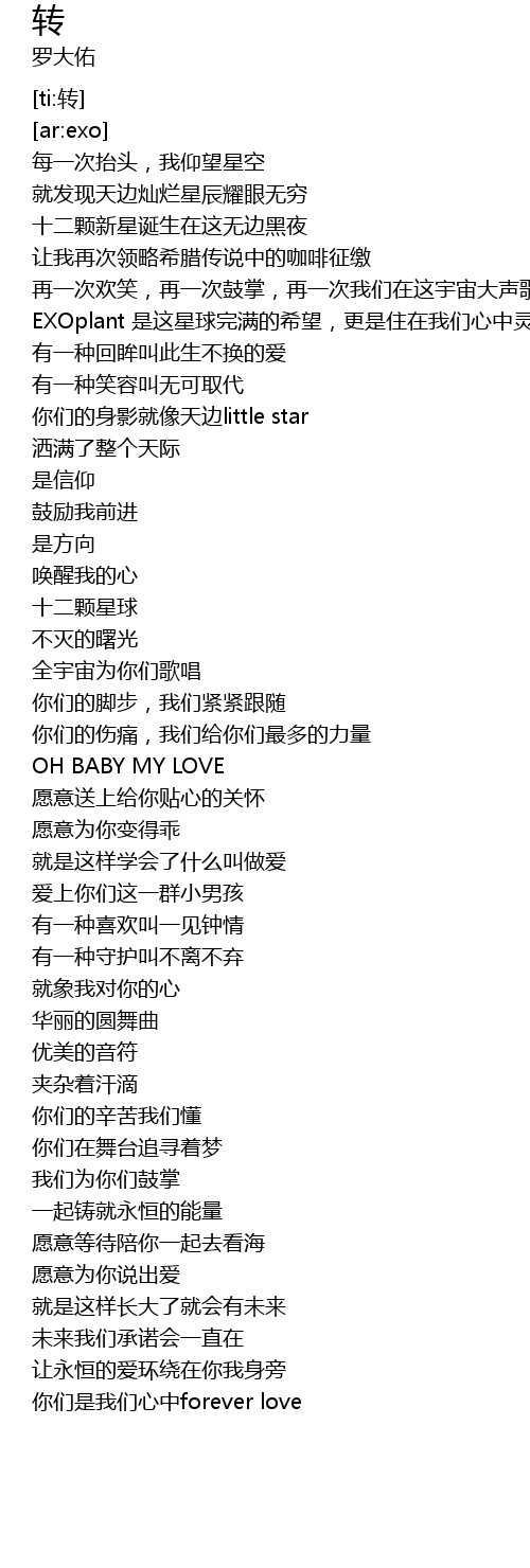 | [00:29.353] | EXOplant shi zhe xing qiu wan man de xi wang, geng shi zhu zai wo men xin zhong ling le |