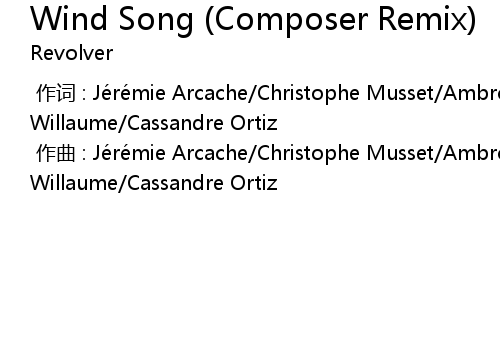 | [00:00.000] | 作曲 : Jérémie Arcache/Christophe Musset/Ambroise Willaume/Cassandre Ortiz |