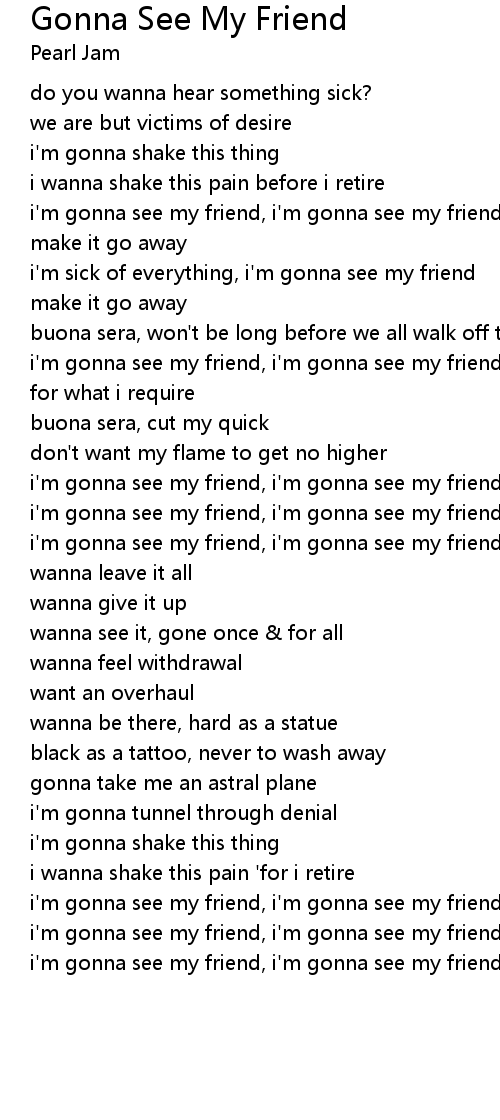 i'm gonna see my friend, i'm gonna see my friend, make it go away |