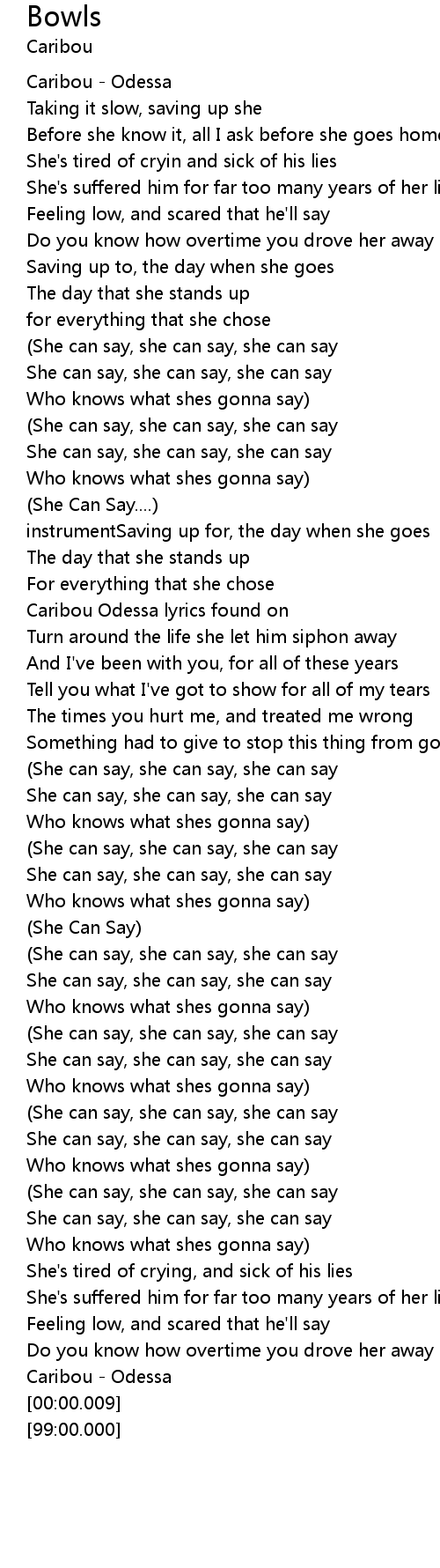 Caribou Odessa lyrics found on |