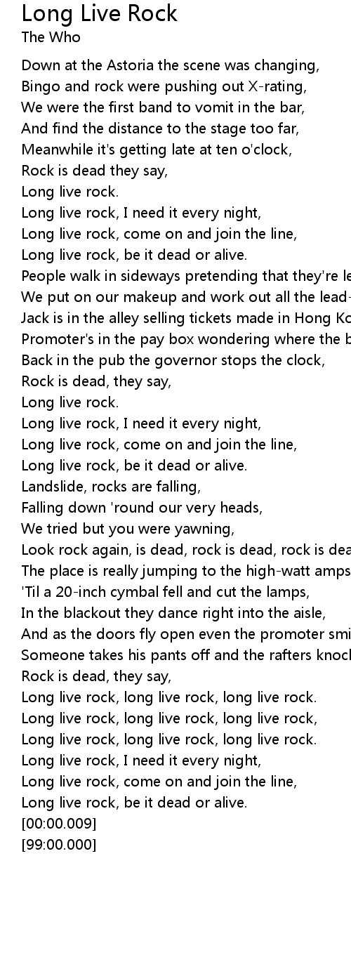 Long live rock, long live rock, long live rock. |