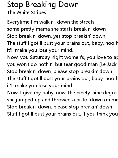 Stop breakin' down, yes stop breakin' down |