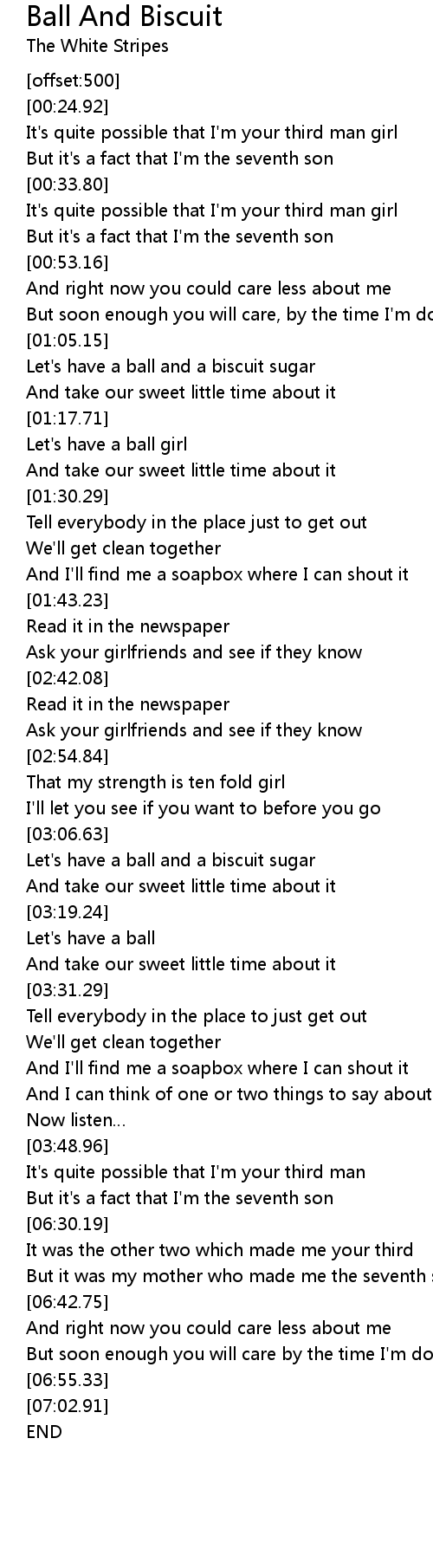 | [03:12.89] | Let' s have a ball and a biscuit sugar |