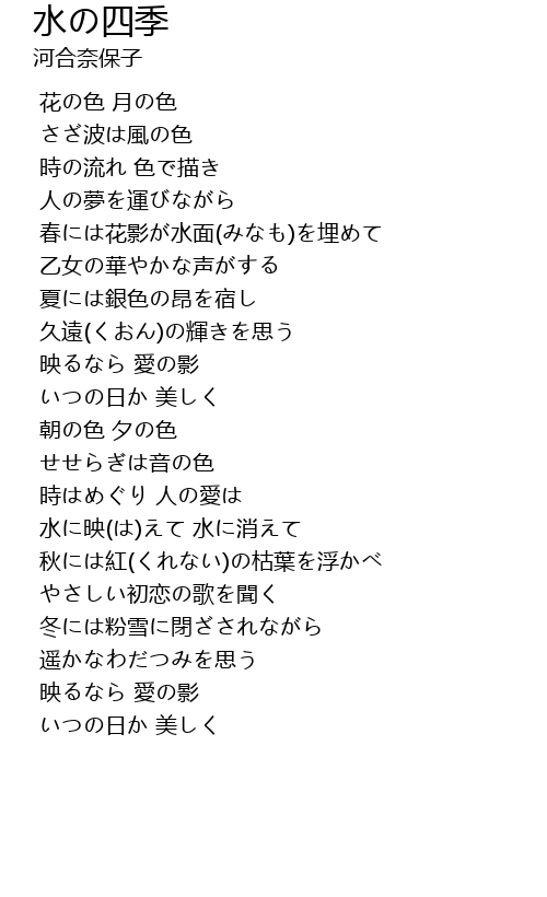 | [03:32.28] | 秋には紅(くれない)の枯葉を浮かべ |
