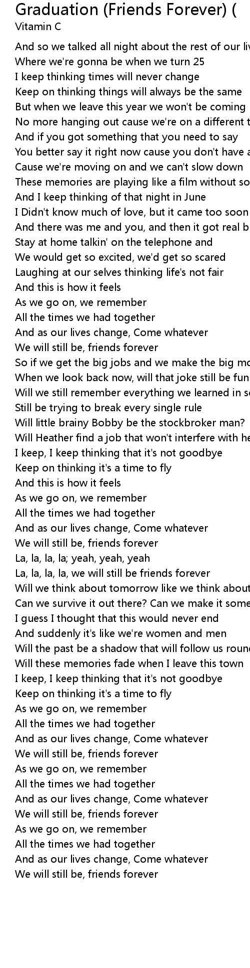 La, la, la, la, we will still be friends forever |