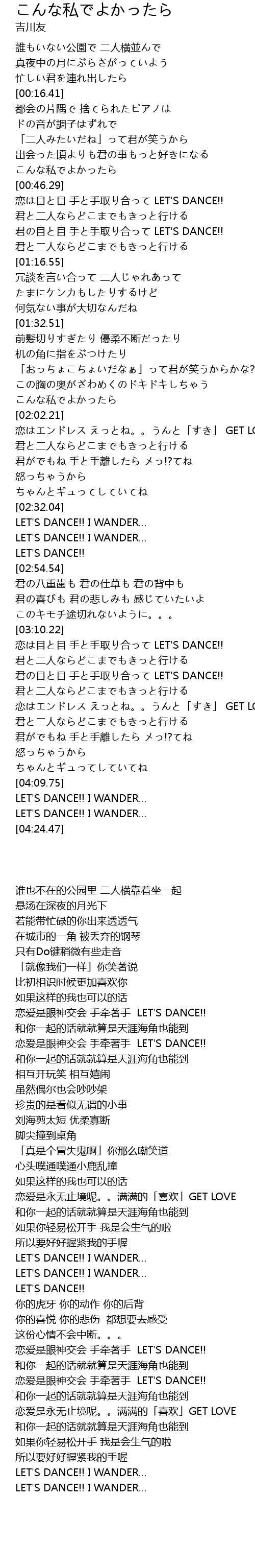 | [04:10.13] | LET' S DANCE!! I WANDER |