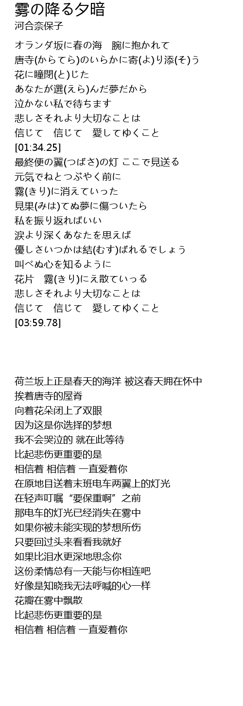 | [03:50.41] | 信じて 信じて 愛してゆくこと |