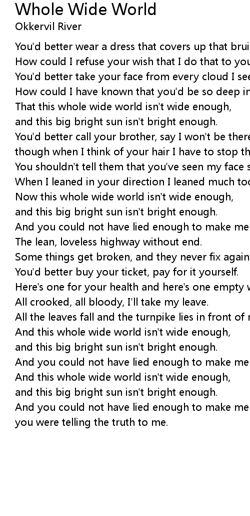 And this whole wide world isn't wide enough, |