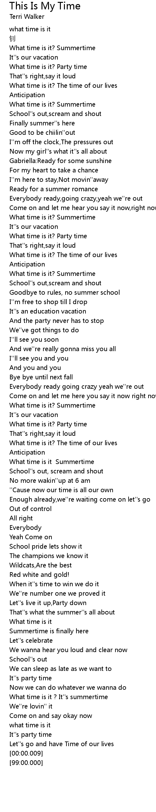 | [01:43.71] | What time is it Summertime |