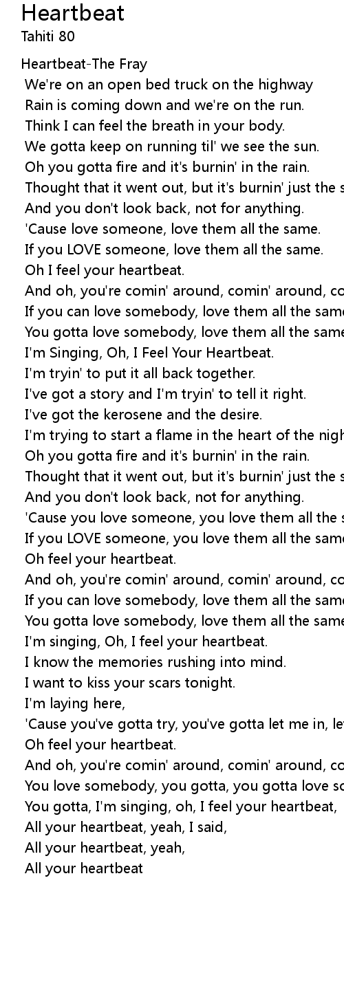 You gotta, I'm singing, oh, I feel your heartbeat, |