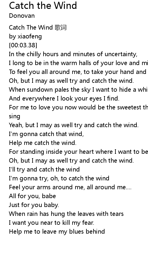 | [02:01.58] | I' m gonna try, oh, to catch the wind |