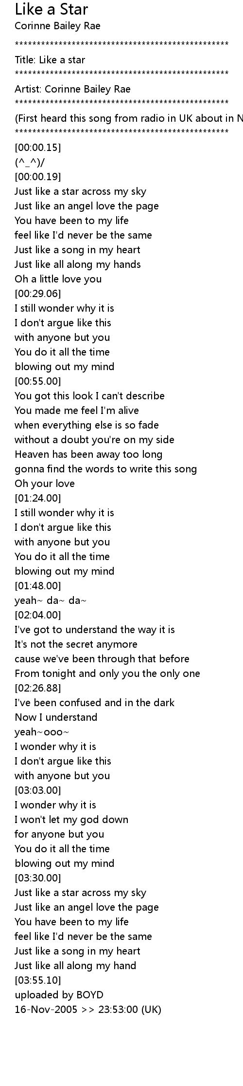 (First heard this song from radio in UK about in Nov-2005) |