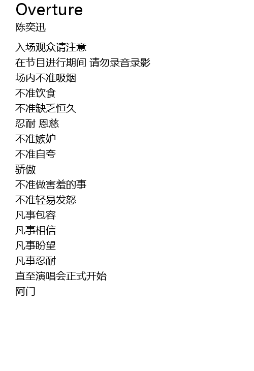 | [00:01.590] | rù chǎng guān zhòng qǐng zhù yì |