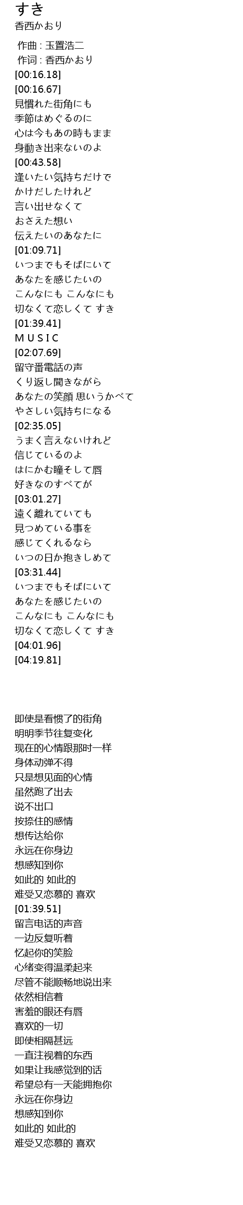 | [01:29.68] | 切なくて恋しくて すき |