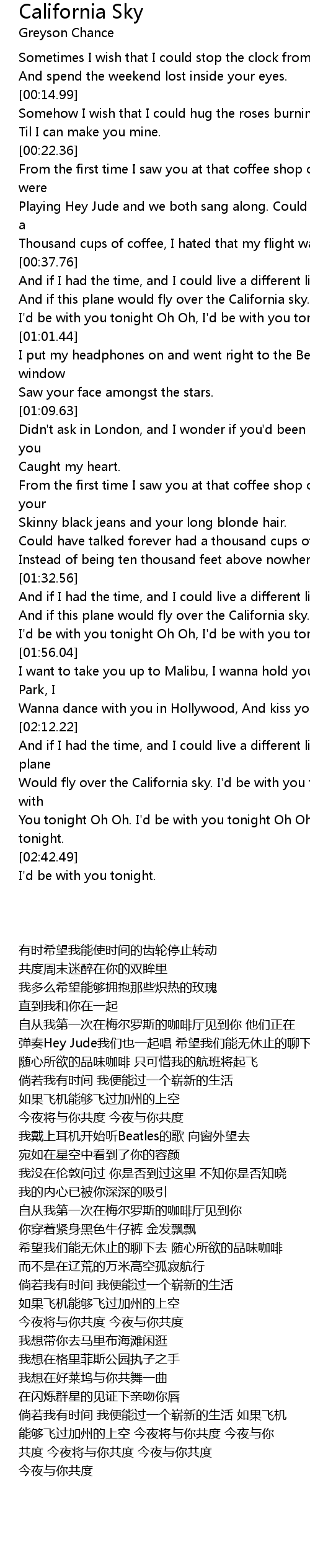 Would fly over the California sky. I'd be with you tonight Oh, I'd be with |