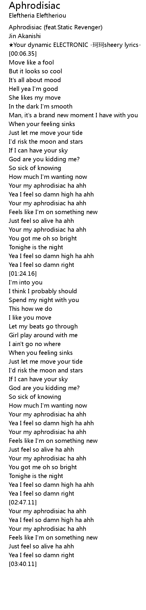 | [02:14.73] | Your my aphrodisiac ha ahh |