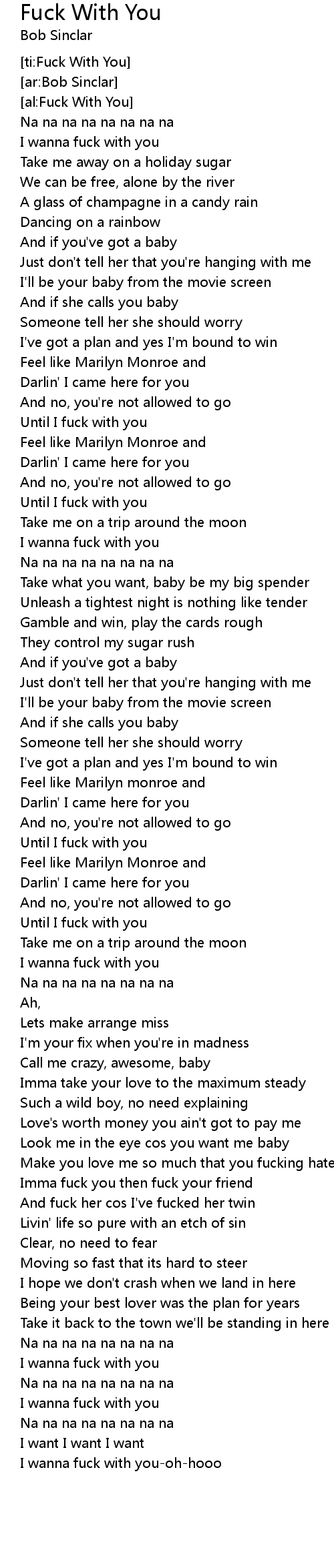I wanna fuck with you-oh-hooo |