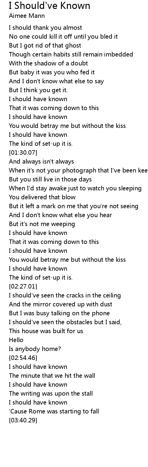 I should have known |