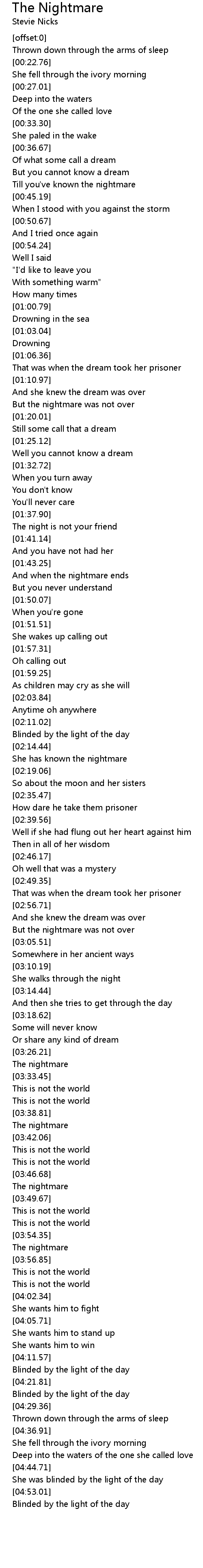 And when the nightmare ends |