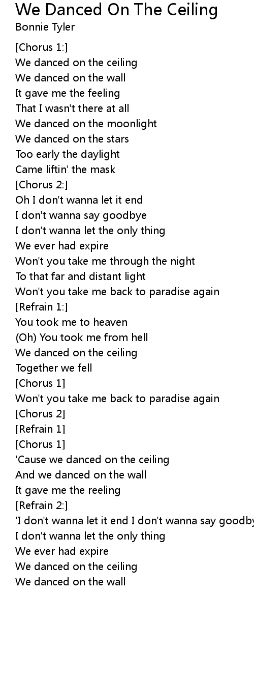 We danced on the ceiling |