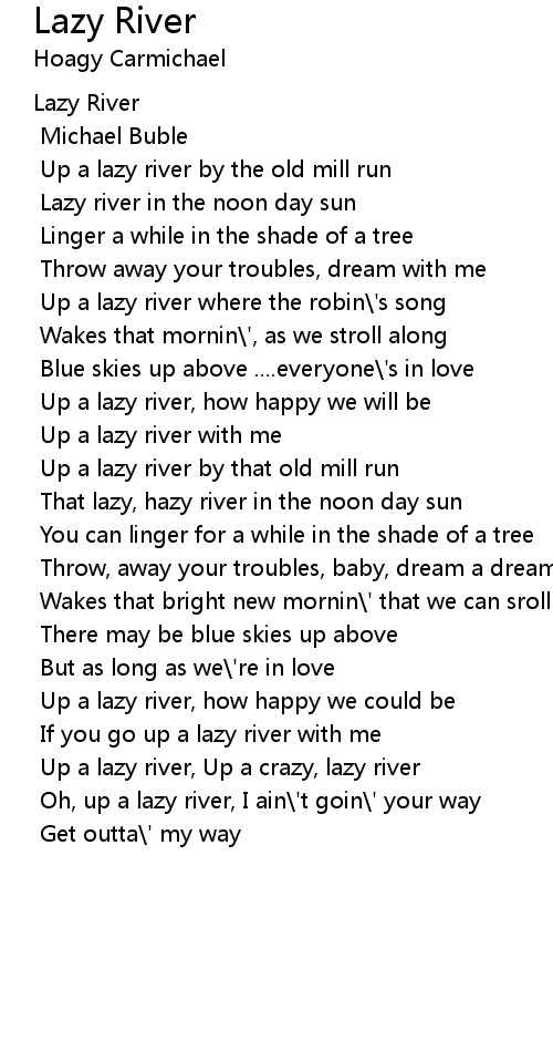 Up a lazy river where the robin\'s song |
