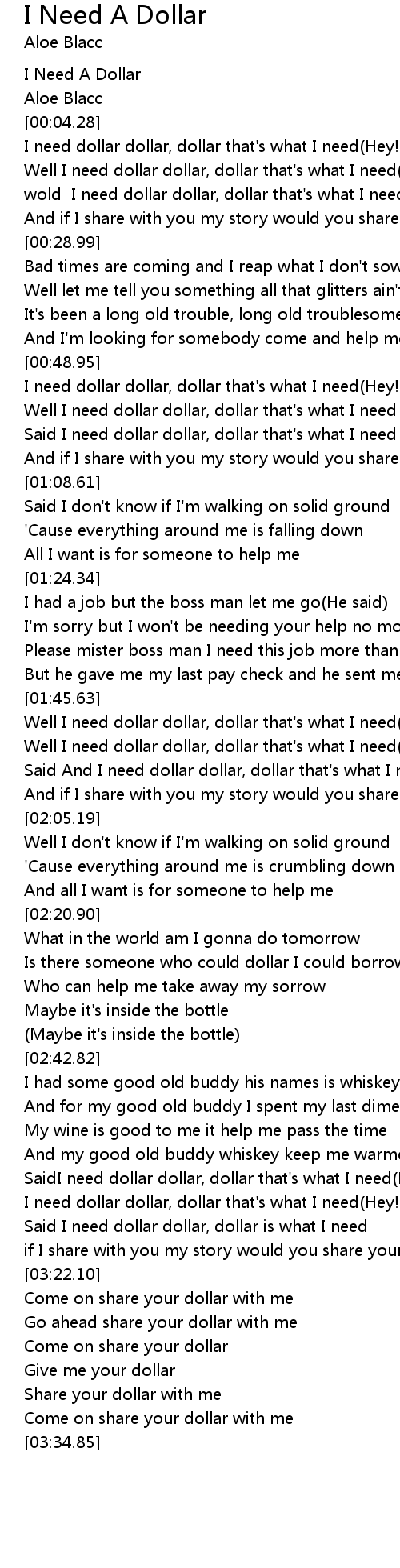 | [00:01.00] | I Need A Dollar |