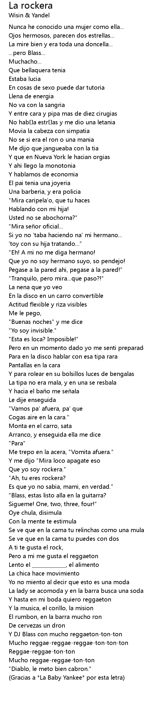 | Gracias a La Baby Yankee por esta letra |