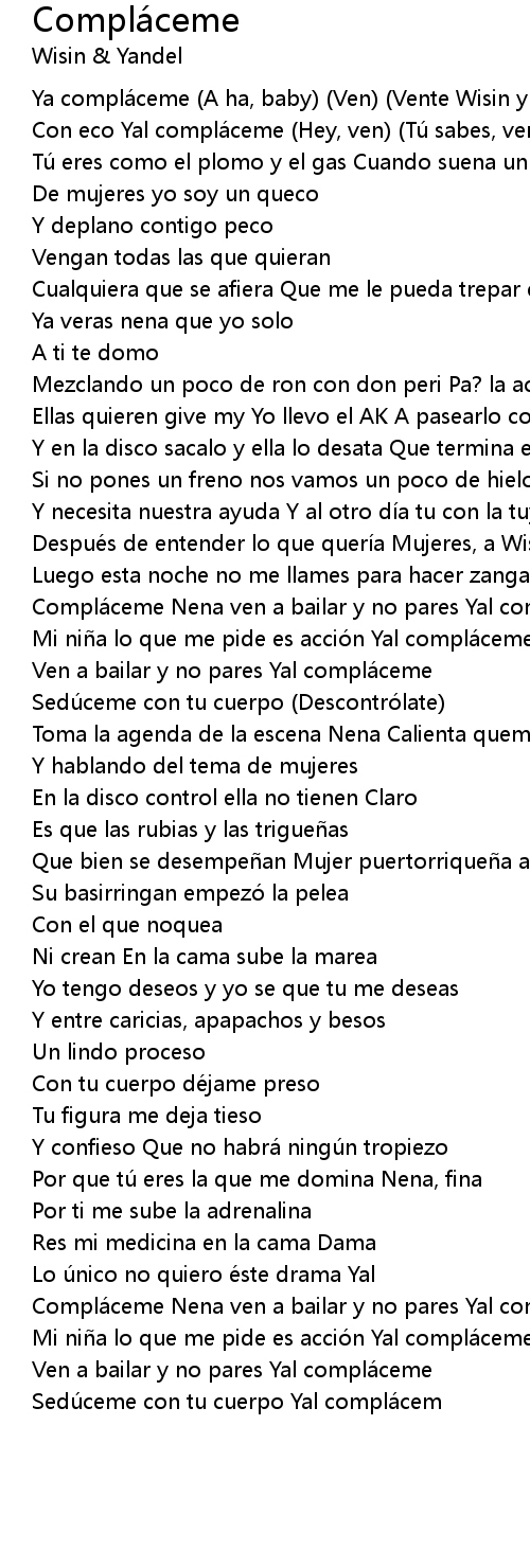 | Compláceme Nena ven a bailar y no pares Yal compláceme | |
