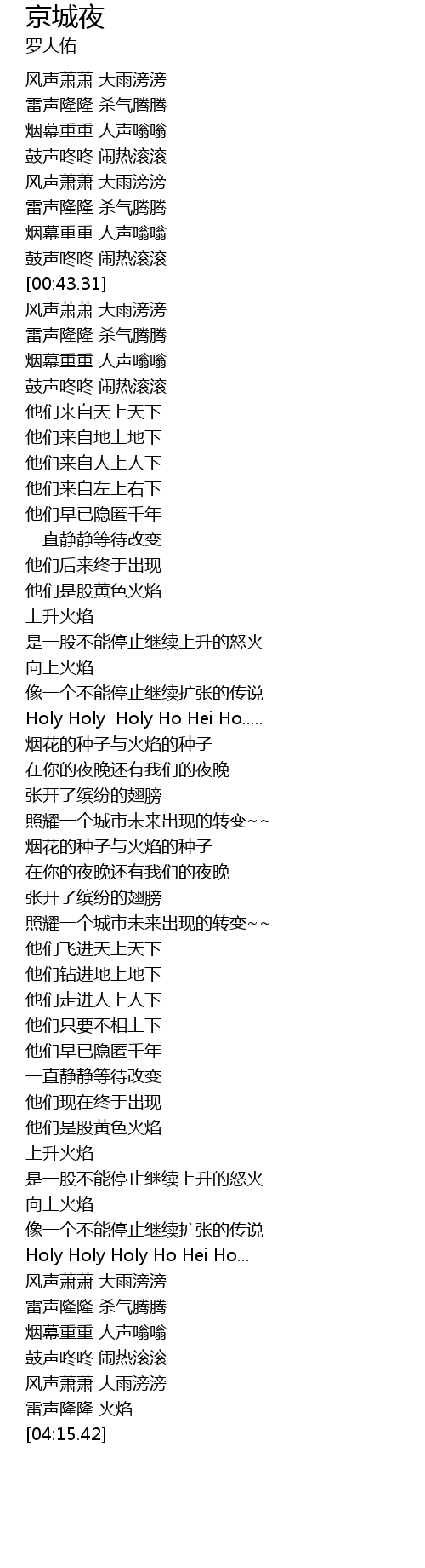 | [04:09.31] | 风声萧萧 大雨滂滂 |