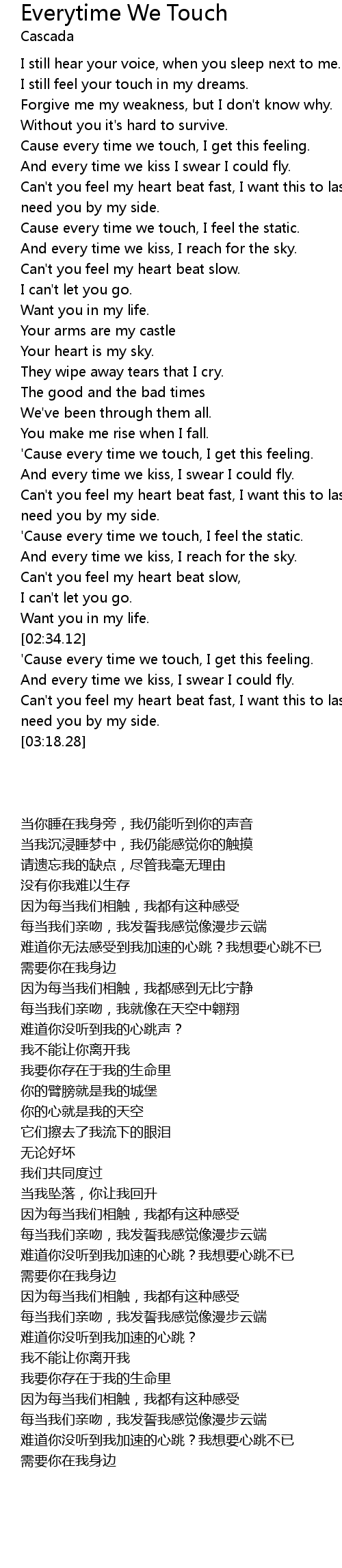 'Cause every time we touch, I get this feeling. |