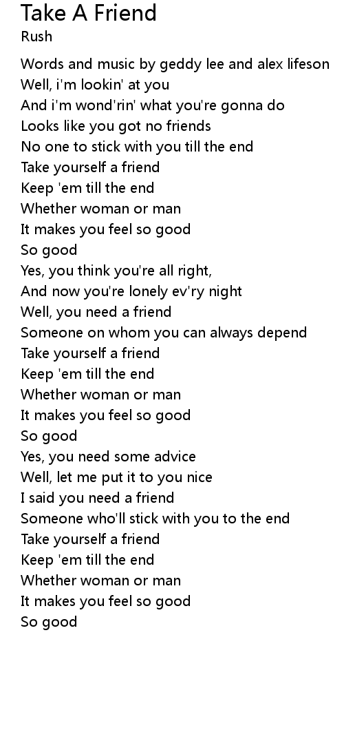 Well, you need a friend |