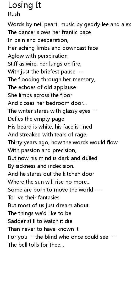 Words by neil peart, music by geddy lee and alex lifeson |