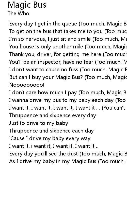 I wanna drive my bus to my baby each day (Too much, Magic Bus)