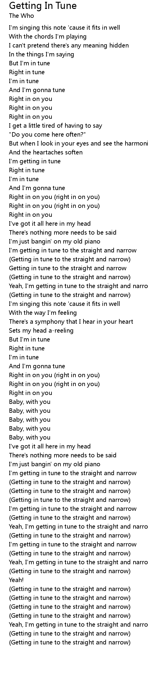 Yeah, I'm getting in tune to the straight and narrow, yeah