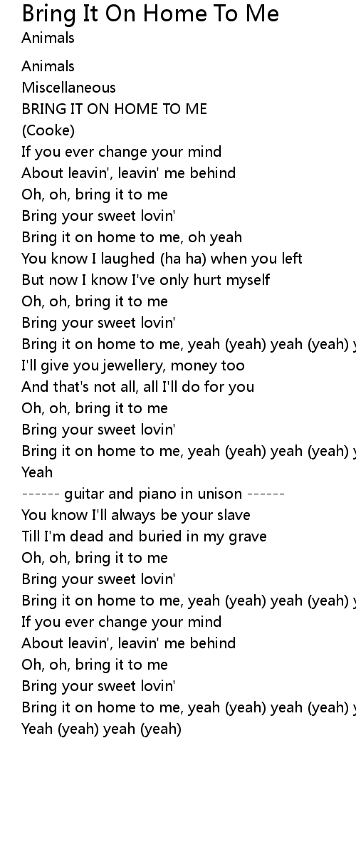 Bring it on home to me, yeah (yeah) yeah (yeah) yeah (yeah) |