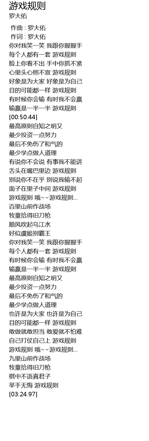 | [02:51.12] | yóu xì guī zé ó yóu xì guī zé... |