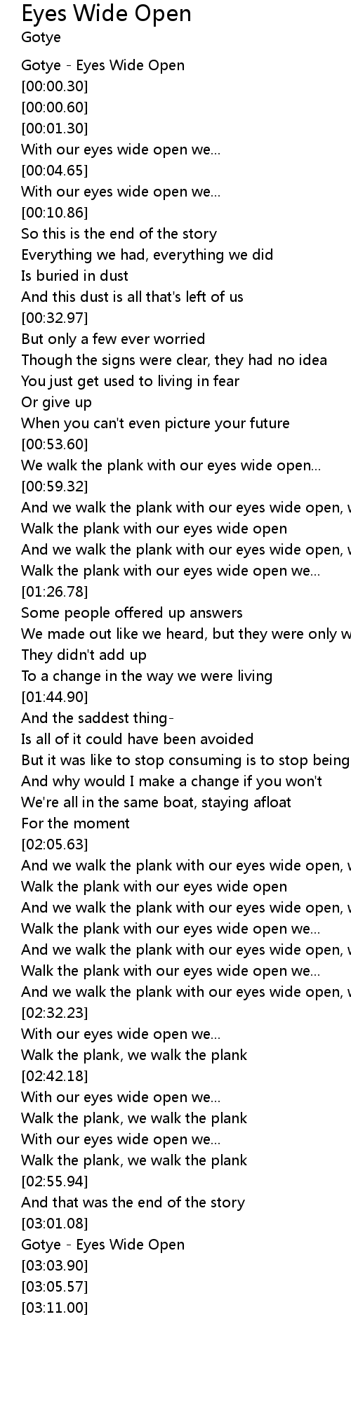 And we walk the plank with our eyes wide open, we.. |