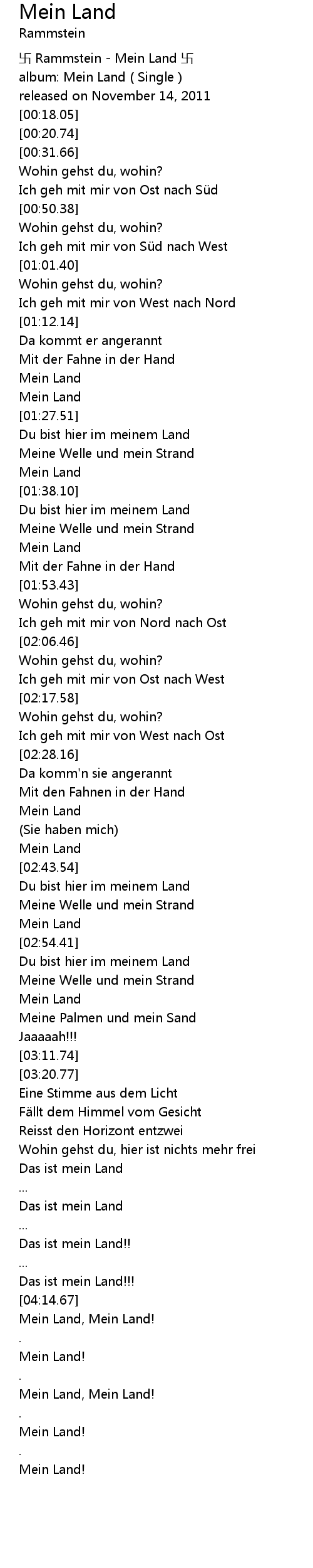 | [03:04.34] | Mein Land |