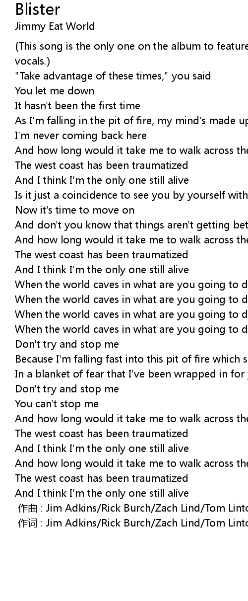 | [00:00.00] | zuo ci : Jim Adkins Rick Burch Zach Lind Tom Linton |