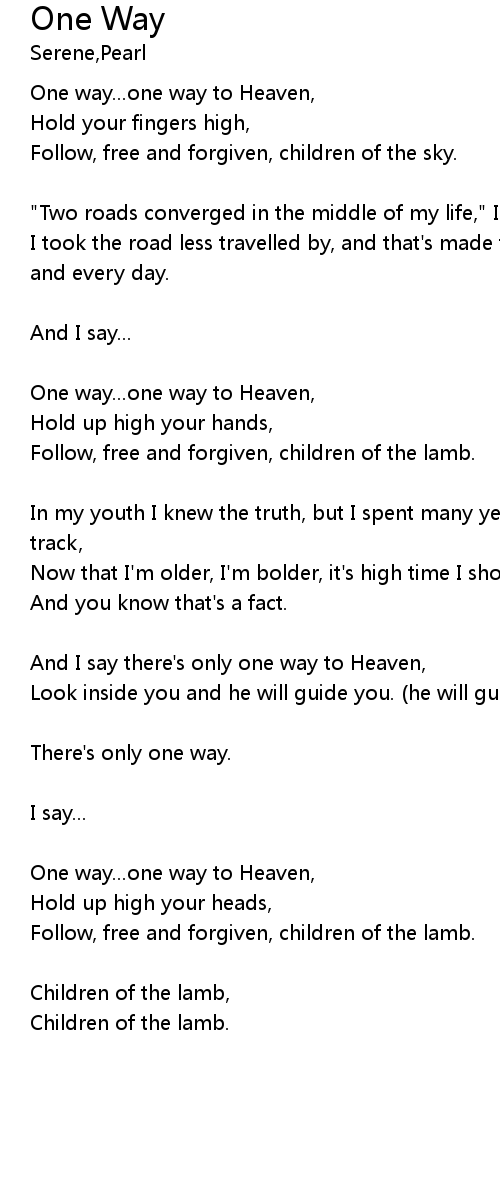 | One way...one way to Heaven, | |