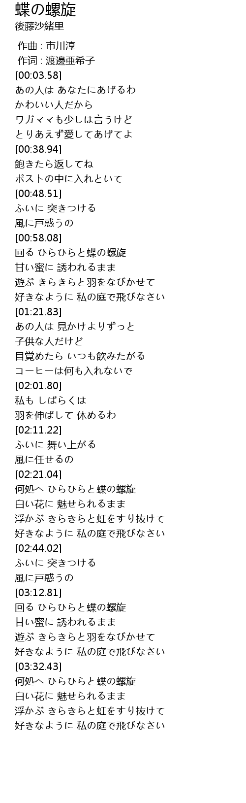 | [03:13.41] | 回る ひらひらと蝶の螺旋 |