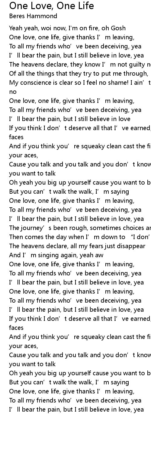 | [01:49.10] | One love, one life, give thanks I' m leaving, |