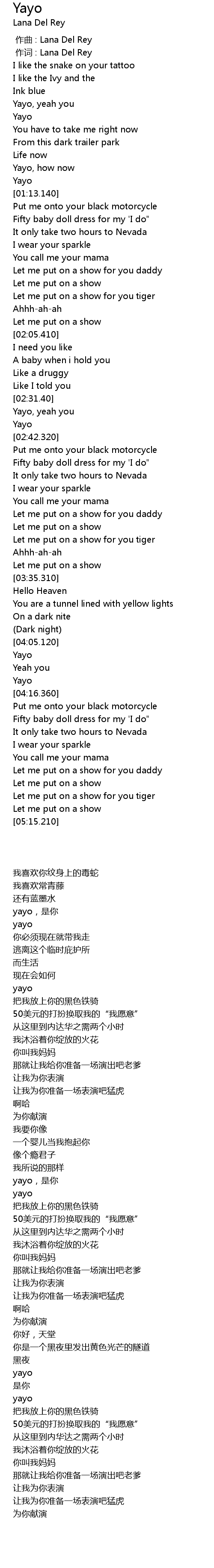 | [00:00.00] | 作曲 : Lana Del Rey |