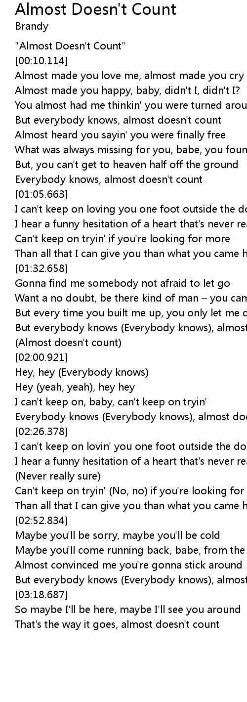 | [00:32.904] | But everybody knows, almost doesn' t count |