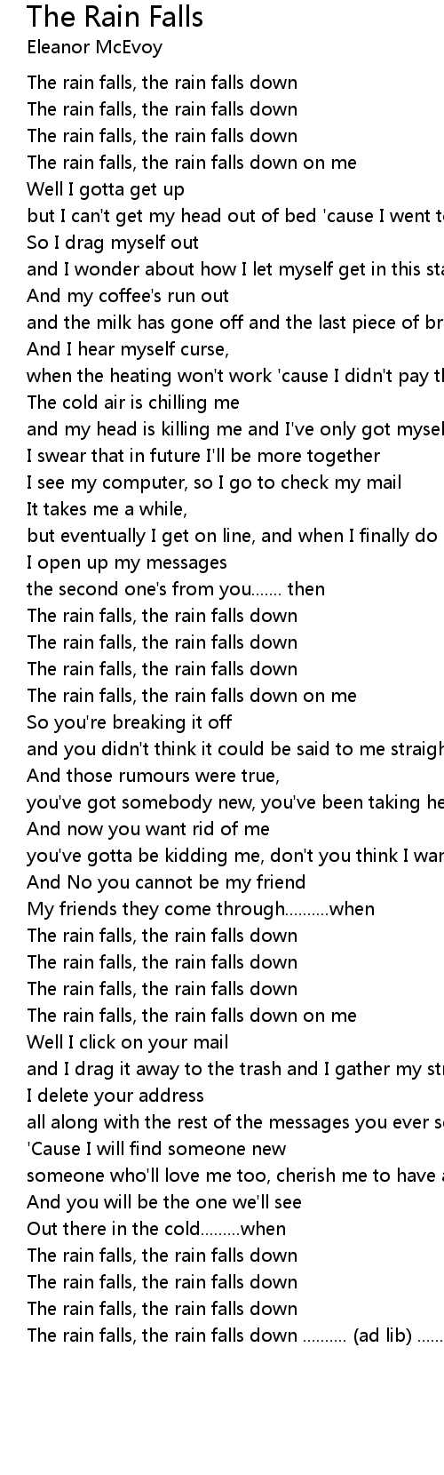 The rain falls, the rain falls down .......... (ad lib) ..........on me |