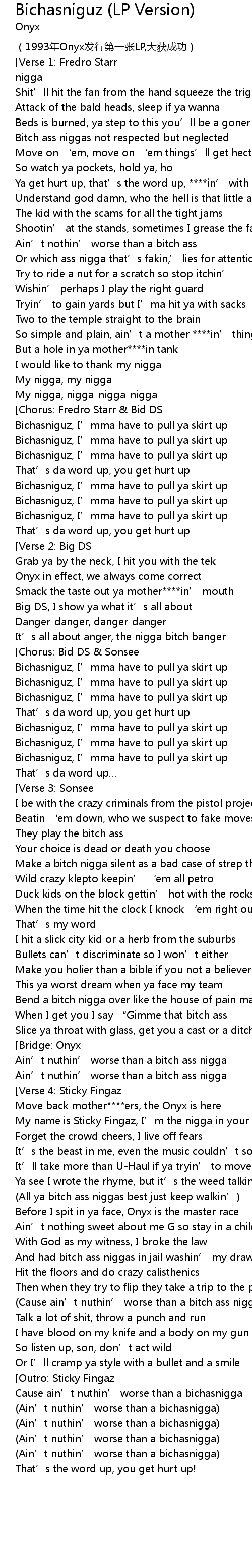 | [03:50.049] | Ain' t nuthin' worse than a bichasnigga |