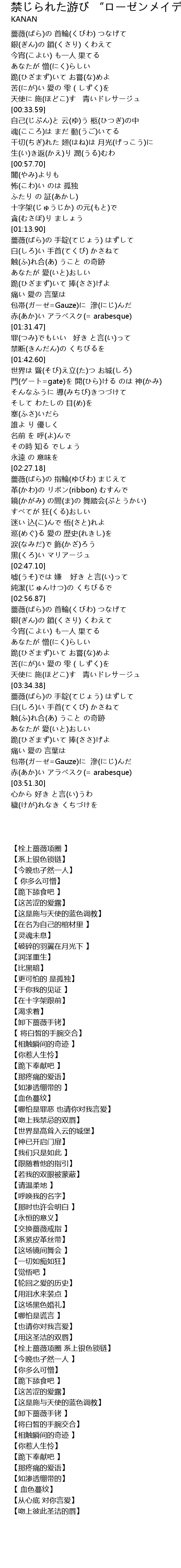 | [03:34.58] | 薔薇(ばら)の 手錠(てじょう) はずして |